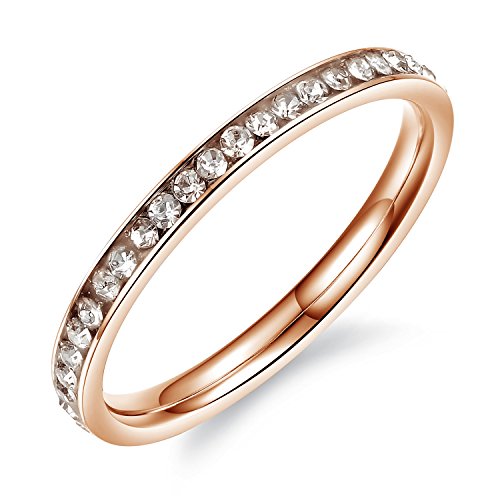 Bigsoho, anello da donna alla moda con zirconi, per matrimonio, fidanzamento, anello 2 mm larghezza, acciaio inossidabile