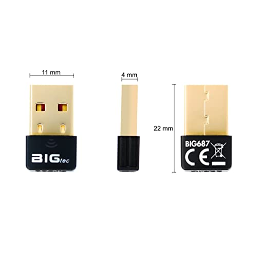 BIGtec 150Mbit nano USB WLAN Stick adattatore - adattatore rete Wireless LAN Stick WLAN Dongel mini USB micro USB WLAN adattatore 2,4 x 1,3 x 0,5 cm con Status LED Anzeige WLAN N adattatore, 802.11n, Chipsatz Ralink, Windows Treiber fino a WIN7, Linux, Mac