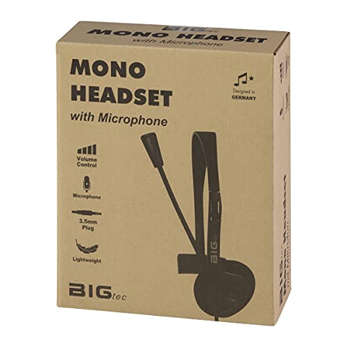 BIGtec Cuffie PC con microfono Mono 1 jack da 3,5 mm di collegamento, leggere, regolabili, braccio flessibile micro braccio, controllo del volume, cavo da 1,8 m, computer portatile, computer