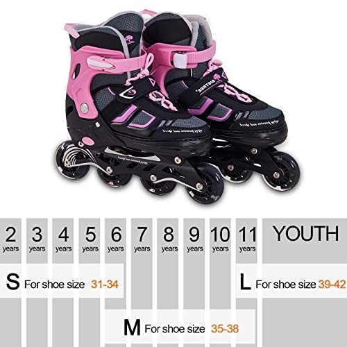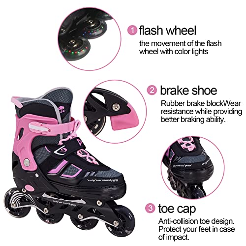 BIGTREE Pattini in linea, 3 marce, con dimensioni regolabili, per adulti, principianti, pattini in linea, ruote luminose lampeggianti (rosa, S (31-34)