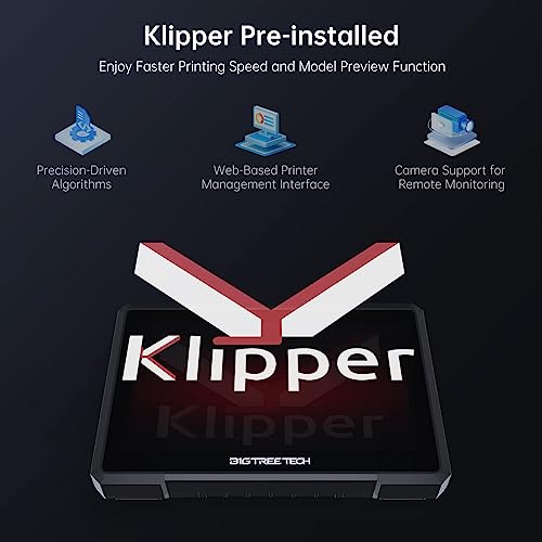 Clip pre-installata: lo schermo BIGTREETECH Pad 7 è pre-installato con firmware con algoritmi orientati alla precisione aumenteranno la velocità di stampa da 2 a 5x. Equipped ADXL345 module and klipper's input shaper function allows BIGTREETECH Pad7 to keep great printing quality in higher printing speed by mitigating vibration. BTT Pad 7 supporta anche il modello G-code intuitivo preview.