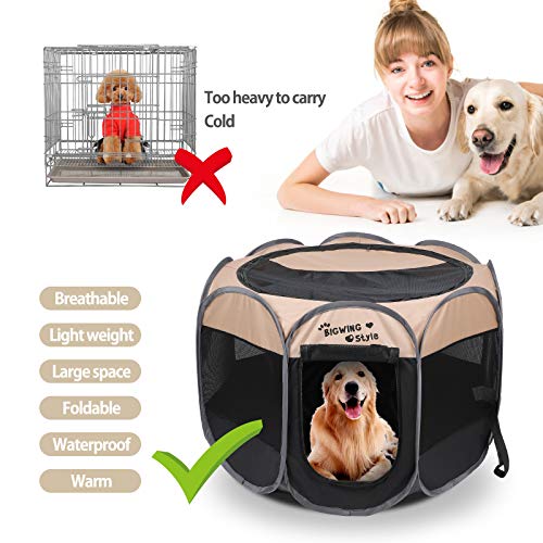 BIGWING Style Recinto per Cani da Interno,Addensare Kennel Cane,Fondo e Top Rimovibili Gabbia per Cani,Usare all'Interno e all'Esterno,con Borsa di Trasporto,XL