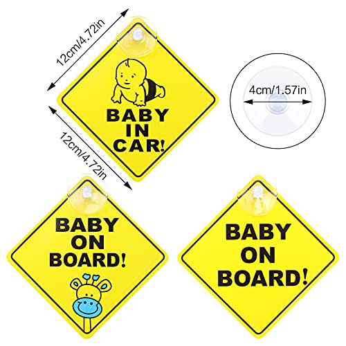 Bigxin 6 Pcs Adesivi Bambini a Bordo Bimbo a Bordo per Auto Baby on Board Auto Adesivi Sticker Baby on Board con Ventosa(12 * 12cm,Giallo)