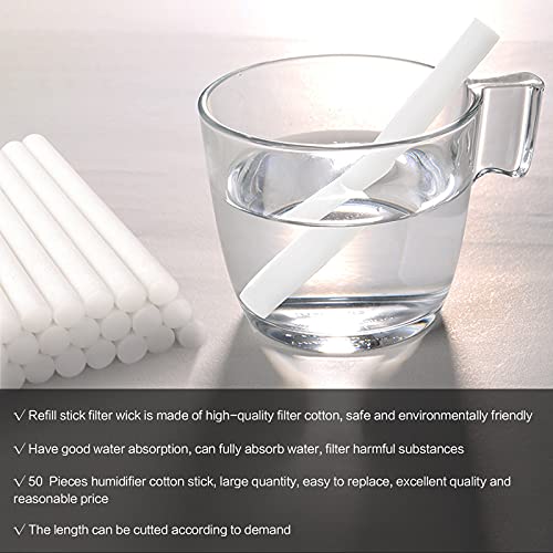 Bigxin 50 Pezzo Bastoncini in Cotone per Filtro dell'Umidificatore Ricarica in Spugna Tamponi per Umidificatore di Ricambio Casa, Ufficio, Camera da Letto, Lunghezza 10cm, Diametro 0.7cm