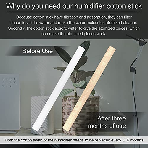 1.Materiale di alta qualità: i bastoncini per umidificatore sono realizzati in cotone filtrante, insolubile in acqua e non facile incollare, permettendoti di godere di una condizione più umida e pulita.