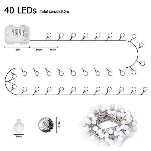 【6,5 M e 40 lucine a LED】 Catena luminosa con 40 LED a luce calda, diametro 17 mm, lunghezza totale circa 6,5 m (di cui 0,5 m di linea di alimentazione), una lunghezza del cavo decente, che semplifica il collegamento del lampade. Puoi facilmente creare tu stesso un'atmosfera romantica, tranquilla e calda con pochi semplici passaggi.
