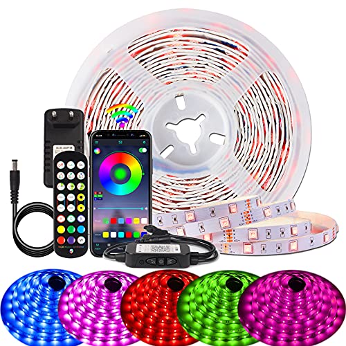 BIHRTC - Striscia LED RGB, 7,5 m, con telecomando, diversi colori, gestione tramite app, sincronizzazione con la musica, per camera da letto, casa, armadio