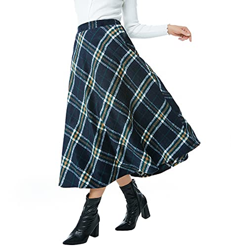 BiilyLi Gonna Lunga Invernale Donna Vita Alta Elegante Quadri Lana Caldo Maxi Gonna Vintage A-Linea Vita Elastica Svasata Gonne Pieghe M