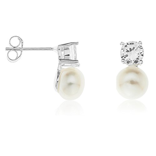 Bijoux pour tous - Orecchini, Perla, ossido di zirconio, Argento Sterling 925