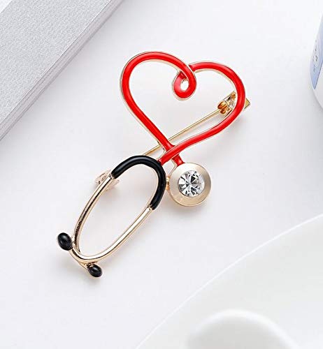Bijouxmodefashion - Spilla in acciaio stetoscopio medico, dottore e cuore rosso