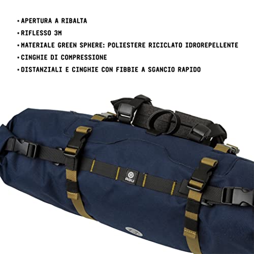 AGU Bikepacking Borsa da Manubrio Bici, Borsa per Bicicletta 17L da Fissare al Manubrio, Idrorepellente, Riflettente, Montaggio Semplice, 100% Poliestere Riciclato - Blu