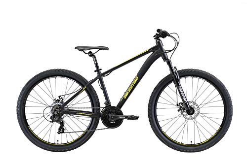 BIKESTAR Hardtail Mountain Bike in Alluminio, Freni a Disco, 27.5" | Bicicletta MTB Telaio 16" Cambio Shimano a 21 velocità, sospensioni | Nero Giallo