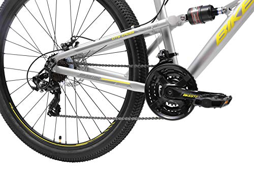 QUALITÀ DEL PRODOTTO: Con il cambio a catena Shimano a 21 rapporti della nostra MTB in alluminio è possibile cambiare rapporto quasi senza soluzione di continuità e, grazie alla forcella elastica con 55 mm di corsa, percorrere un terreno accidentato diventa un piacere. I freni a disco meccanici posteriori e anteriori assicurano il controllo necessario e i cerchi a sezione cava garantiscono stabilità su qualsiasi tipo di fondo