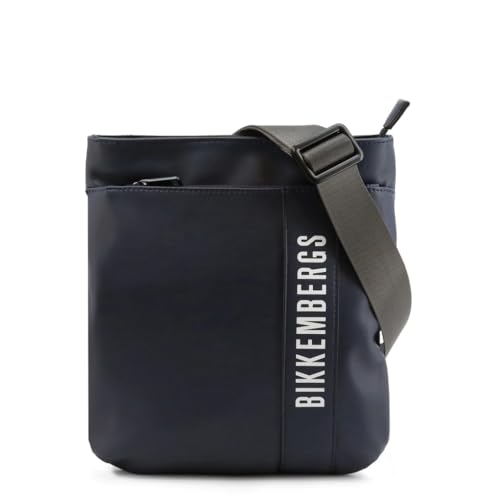 Bikkembergs Tracolla da uomo tessuto gommato Flat Crossover bag con cerniera anteriore Blu. Borsa da uomo casual. Collezione 2021