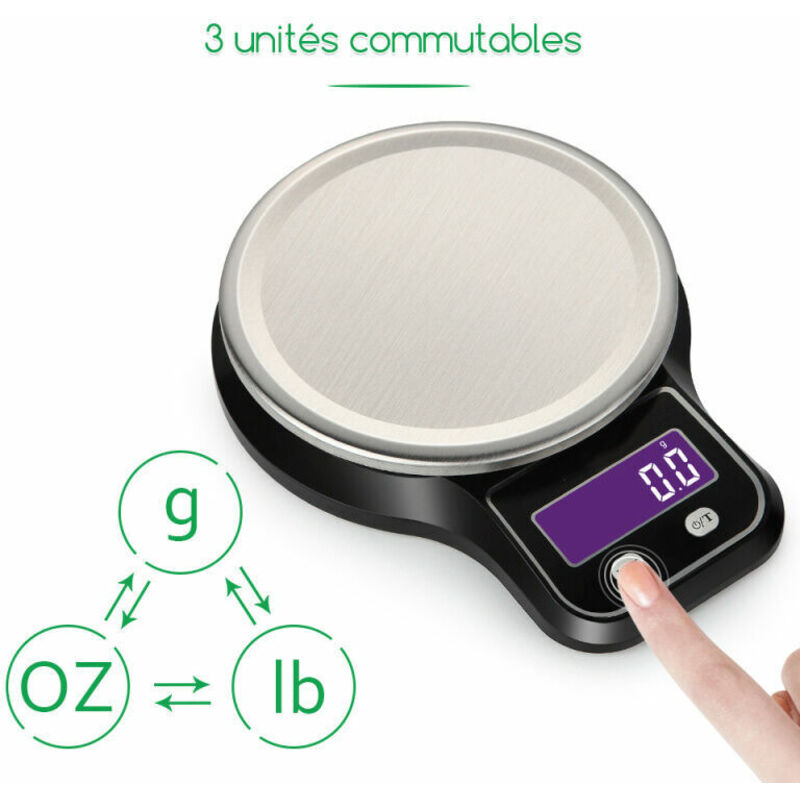 Caratteristiche: piatto di pesata in acciaio inox satinato. Display LCD chiaro con retroilluminazione viola. g, oz, lb, 3 unità di pesatura commutabili, fondo antiscivolo. Una precisa bilancia da cucina elettronica. La precisione della misurazione è di 3 kg/0,1 g, 5 kg/1 g (specifica opzionale). 60 secondi di tensione automatica e protezione da sovraccarico. Specifiche: Colore: giallo;