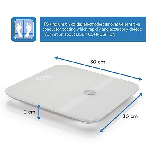 Bilancia da bagno elettronica Smart con calcolo della composizione corporale, con bluetooth e superficie ITO