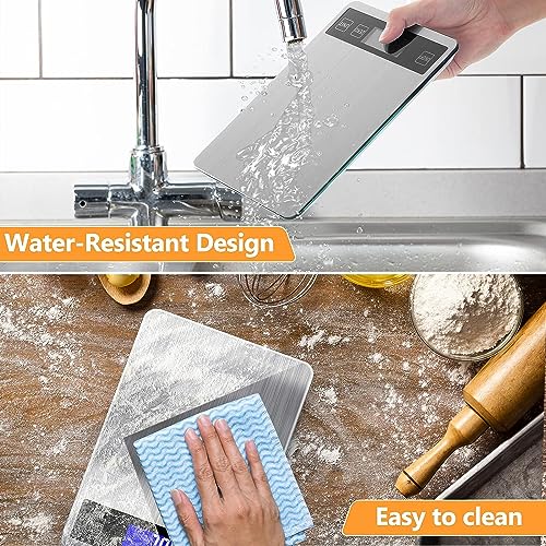 Facile da pulire e da riporre: la piattaforma di misurazione intelligente e leggera in acciaio inossidabile è facile da pulire e mantenere. Può essere facilmente riposto quando non in uso. Molto adatto alla cucina casalinga e alla distribuzione di cibi o liquidi.