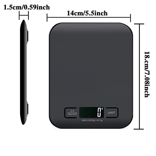 Bilancia Da Cucina Digitale 5kg/1g Bilancia Per Alimenti Con Display Lcd Retroilluminato E Funzione Tara Bilancia Multifunzione In Acciaio Inox Per Alimenti/Cucina/Forno/Peso (5kg) (5KG, nero)