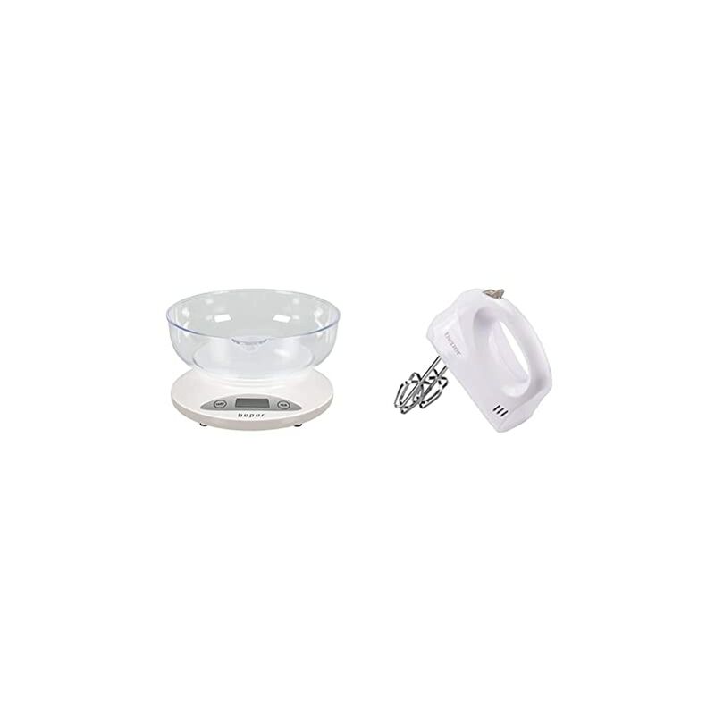 Beper BP.802 Bilancia da Cucina Digitale, Ciotola Trasparente Rimovibile, Alimenti Solidi e Liquidi & BP.304 Sbattitore Elettrico e Mescolatore, 150 W, 70 Decibel Style: bilancia con ciotola;