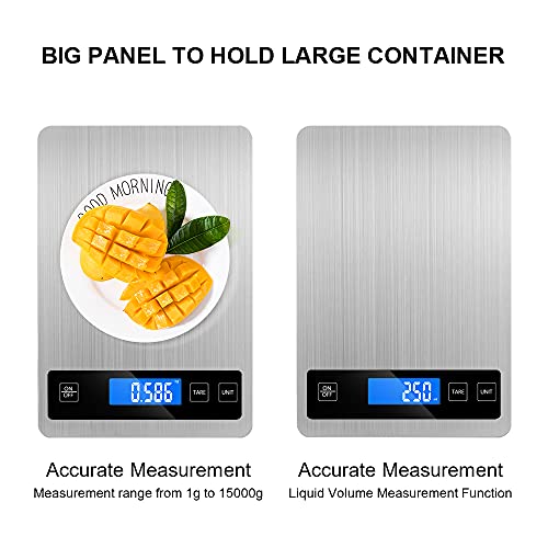 【Peso da 15 kg & Precisione 1g】Misura l'oggetto da 2g a 15kg. Con quattro sensori, la precisione è da 1g. Anche se il cibo è collocato oltre il pannello, bilancia elettronica misura il peso preciso.
