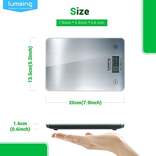 Bilancia da cucina, Lumsing Bilancia da cucina digitale 5kg / 1g Bilance domestiche Bilance Bilance Bilancia a scala fine con funzione Tare Superficie in acciaio inox Display LCD in argento