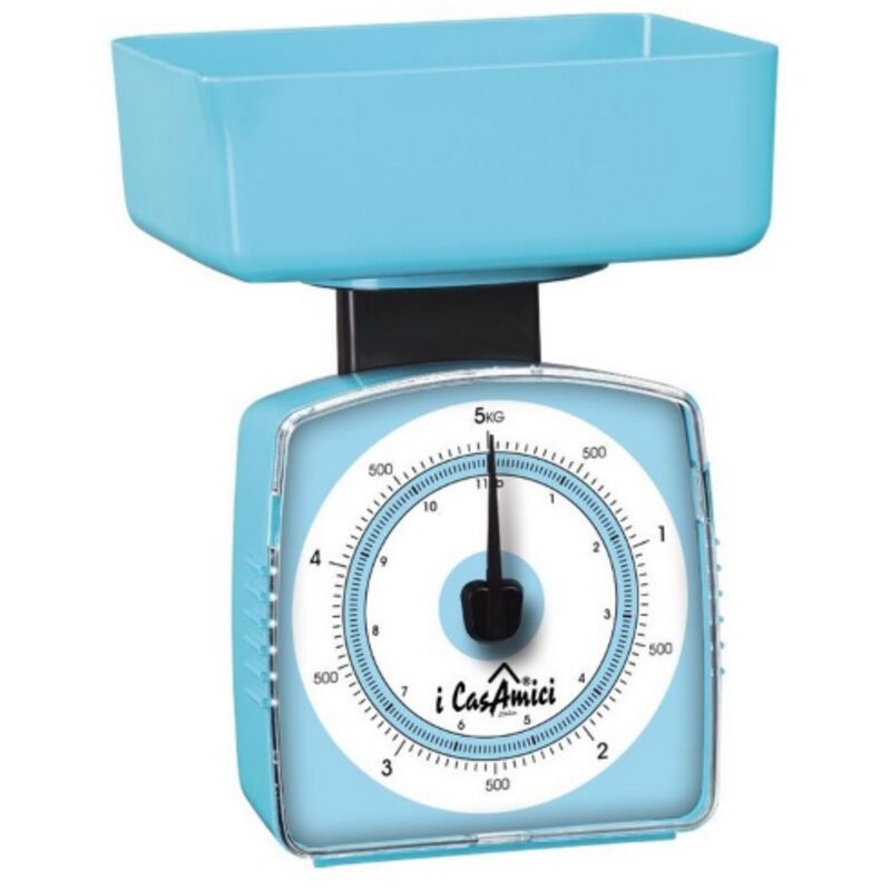 I Casamici bilancia da cucina meccanica in plastica modello Rosa max 5 Kg. CARATTERISTICHE: Peso max: 5 Kg. Peso minimo: 50 g. Capacita' contenitore: 1 lt . Colore: Azzurro. Marca: I casamici. Dimensioni senza piatto: cm 12x8x16.