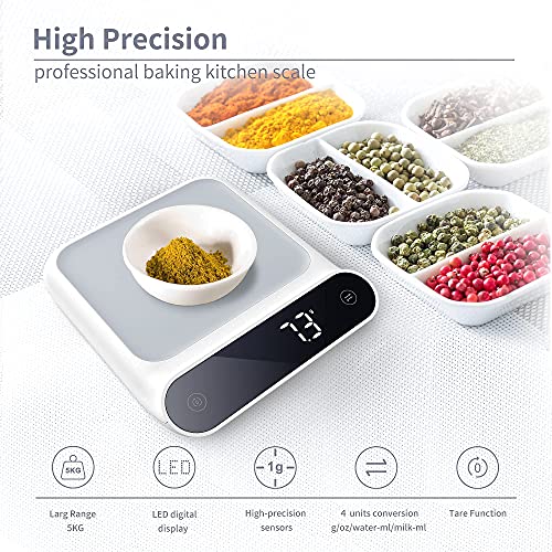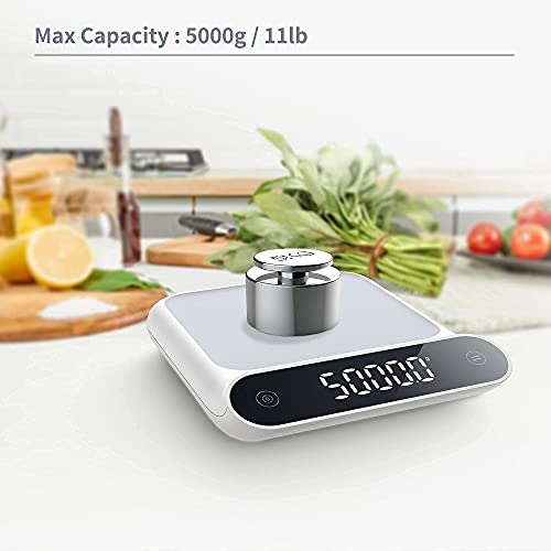 Bilancia da Cucina, VOLUEX Bilancia Cucina Digitale Precisione Portatile con LED Display, Funzione Tare, Funzione Letture della Holding, 5000g/0.5g, Pesa in Grammi e Once