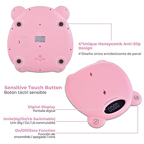 Bilancia digitale per bambini, 5 g fino a 120 kg, per neonati, bilance per animali domestici, bilancia per bambini, con funzione tara e supporto (rosa)