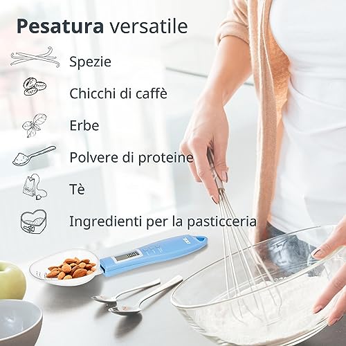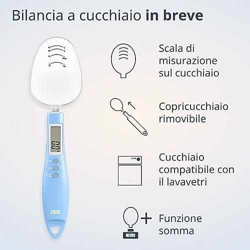 ADE Bilancia digitale a cucchiaio di precisione | bilancia elettronica a cucchiaio dosatore per pesare e dosare precisi | precisione di 0,1 grammi | anche per liquidi | con display LCD | Blu