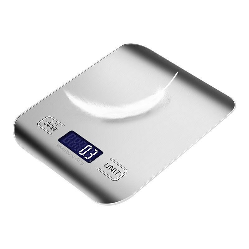 spegnimento automatico (2 minuti) per risparmiare energia Materiale: vassoio in acciaio inox resina ABS (acrilonitrilo butadieno estireno) progettato per una facile pulizia e manutenzione. Grande display LCD: progettato con un'elevata display LCD di qualità e di facile lettura nella conversione rapida tra g-kg-lb-oz-ml-latte/ML (1kg=1000g=2.2lb=35oz). Indicatore di batteria scarica. Buona qualità: richiede 2 batterie AAA (incluse) con un vano batterie di facile accesso