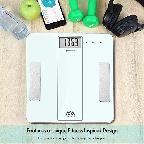 Bilancia pesa persona SENSSUN - Monitorizza e analizza la composizione corporea - Bilancia da bagno - Bilancia per misurazione del peso con app per smartphone (White-1)