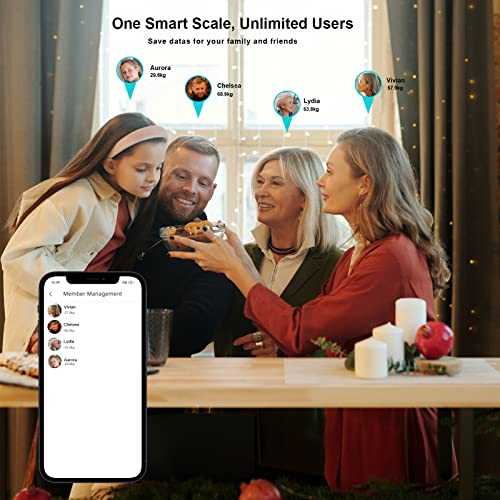 【Una bilancia, multiutente】 Questa bilancia intelligente ti consente di creare profili di più membri per tenere traccia dei loro dati, fino a 8 membri, i dati di ogni utente verranno gestiti individualmente. Così puoi condividere una bilancia con la tua famiglia insieme. È conveniente per ogni membro della famiglia conoscere meglio le proprie metriche corporee e apportare alcuni miglioramenti rilevanti.