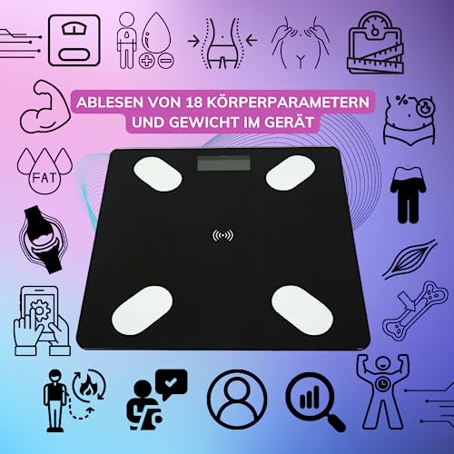 ✔ FINO A 18 DIVERSE FUNZIONI - Il display a LED retroilluminato è ben leggibile anche in condizioni di scarsa illuminazione. Peso corporeo, massa muscolare, massa grassa, massa d'acqua, livello del tessuto osseo, % acqua corporea, percentuale di grasso corporeo, % massa muscolare corporea, % BMI, controllo dell'obesità Controllo del peso normale Determinazione dell'età biologica BMR - fabbisogno calorico giornaliero Monitoraggio dei progressi Memoria per l'analisi dei risultati Possibilità di registrazione e misurazione per 8 utenti