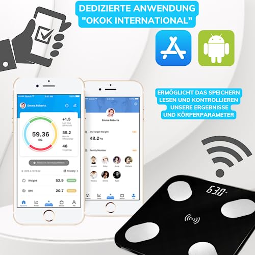 ✔ Bilancia pesapersone intelligente: la bilancia intelligente è il dispositivo perfetto per ogni casa. Grazie alla sua ergonomia, puoi facilmente riporli sotto un armadio, posizionarli ovunque e portarli ovunque tu voglia. Perché la bilancia è SMART? Puoi collegarli a qualsiasi dispositivo tramite Bluetooth. Tale servizio ti consente di confrontare e registrare i tuoi progressi e i parametri del corpo.