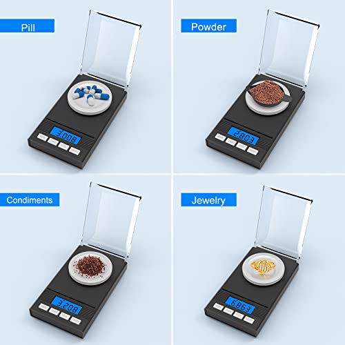 [Bilancia di Precisione] La bilancia da cucina con sensori di precisione pesa fino a 50g/0.001g, precisione 0,001 g, buona precisione e alta stabilità del display. Mini bilancia milligramm ad alta precisione, ideale per pesare oro o gioielli, polvere o altre piccole cose pesano. Questa bilancia digitale può essere utilizzata come bilancia per gioielli, per laboratorio, per diamanti, per carati, ecc.