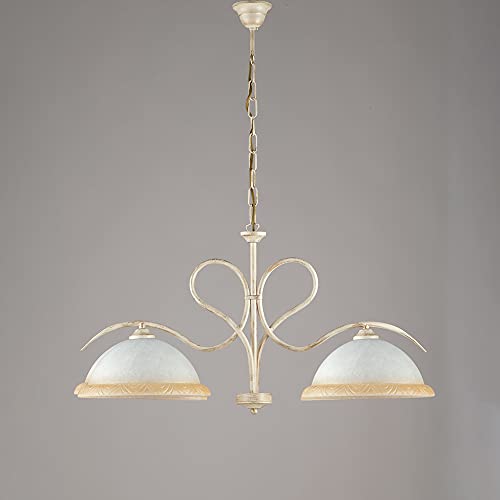 Bilanciere Rustico 2 Luci Ferro Battuto Avorio e Vetro Serie Miranda