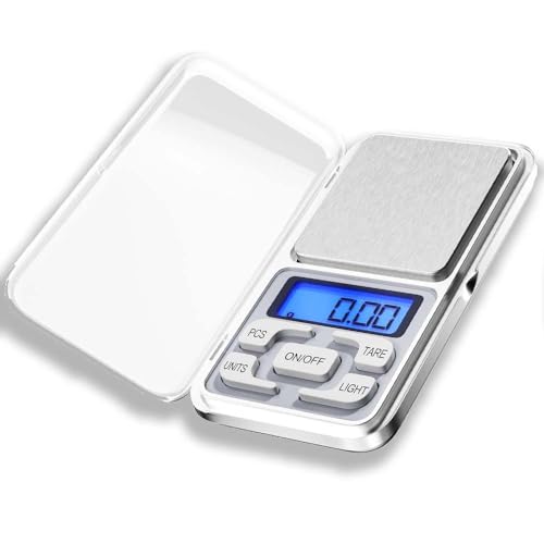 Bilancino Digitale di Precisione 0.1gr per Alimenti e Oro, Tascabile con Display Retroilluminato con Custodia Protettiva