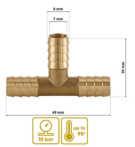 BILBAU Raccordo Terminale per Tubo Pneumatico, Tipo T 8mm - Ottone Massiccio, Ideale per Ossigeno e Aria Compressa, Montaggio Tramite Morsetti per GPL