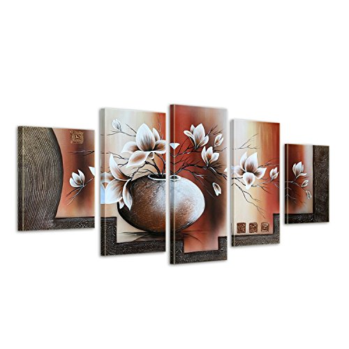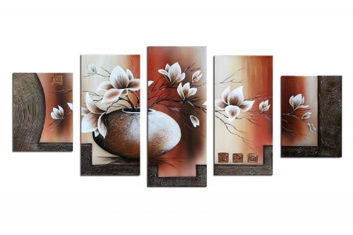 Bilderdepot24 Magnolia M3 Immagine Dipinta a Mano 150x70cm in 5 Parti 609