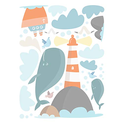 Bilderwelten Adesivo murale Top Bambini, Dimensione:30x40cm, Motivo:Faro e balenottere