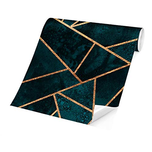 Bilderwelten Carta da Parati Cucina Soggiorno Adesiva - Scuro Turchese con Oro 290 x 432cm