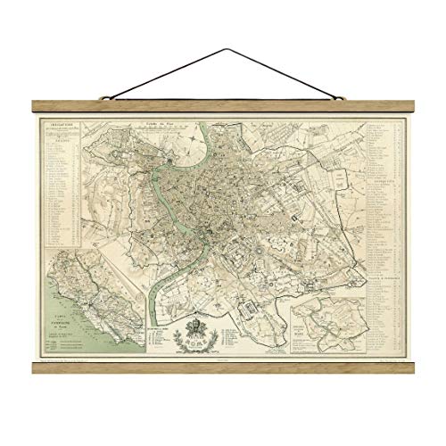 Bilderwelten Quadro Tessuto Moderno Vintage Mappa di Roma Antica - Orizzontale 2:3, 23.5 x 35cm, Legno di Quercia