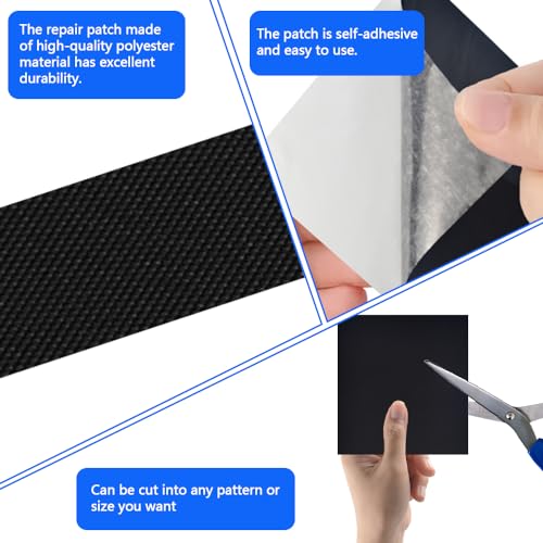 BILDHM 11 Pz Toppe Impermeabili Autoadesive Patch di Riparazione Autoadesive per Vestiti 20 x 10cm Patch Riparazione Abbigliamento In Tessuto per Tende Borsa Ombrello Abbigliamento Piumino (Nero)