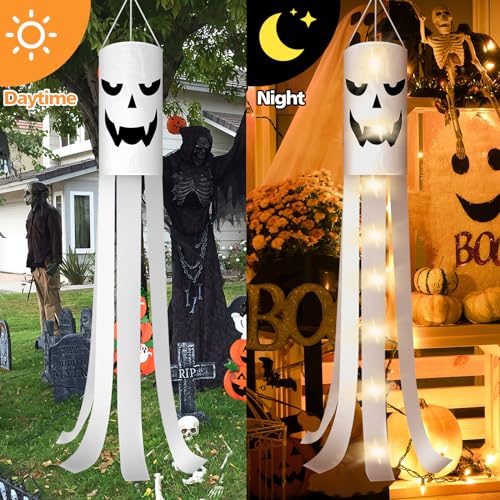 Bilivry Halloween Decorazioni, 2 PCS Maniche a Vento di Halloween da 1,8 M, Adatte per Appendere Lanterne a LED di Halloween per Interni ed Esterni, Decorazioni di Fantasmi Illuminati
