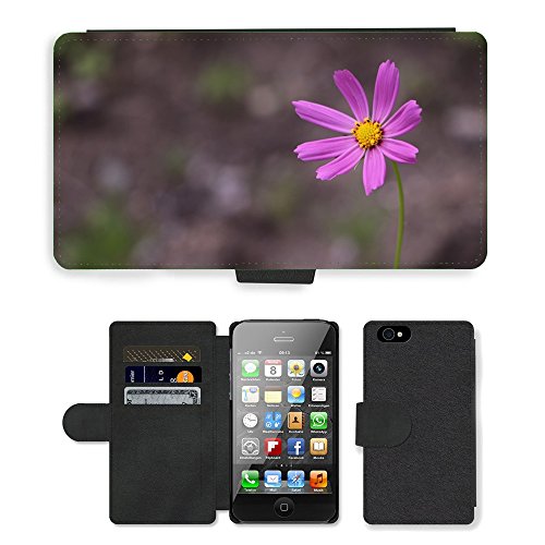 PU Billetera de Cuero Caso Titular de la tarjeta Carcasa Funda para // M00289892 Cosmea Viola pianta Natura // Apple iPhone 4 4S 4G
