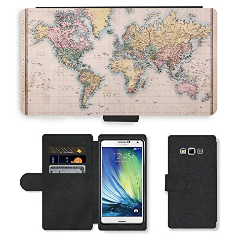 PU Billetera de Cuero Caso Titular de la tarjeta Carcasa Funda para // V00002415 Proiezione Mercator Mondiale Vecchio // Samsung Galaxy A7 (not fit S7)