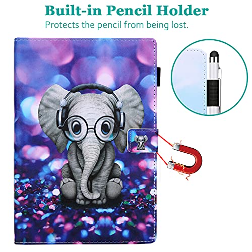 Billionn - Custodia per tablet Kindle Fire HD 10 e HD 10 Plus (11ª generazione, versione 2021) + pellicola proteggi schermo, con funzione di accensione e spegnimento automatico, motivo: elefante