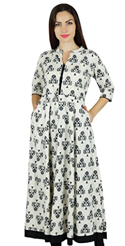 Bimba Anarkali Kurti - Camicia lunga da donna con tasche bianco 50