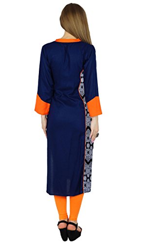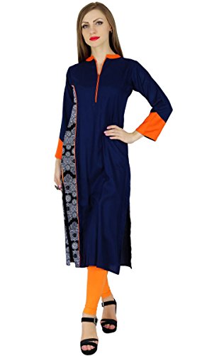Bimba Donne Blu Chic Stile Tunica Indiana Kurta Kurti Boho Collo Camicetta