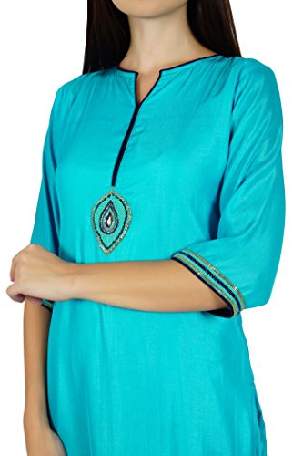 Bimba Donne Chic Stile Tunica Indiana Diritta Kurta Kurti con la Mano-in Rilievo Work Camicetta Superiore